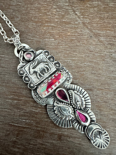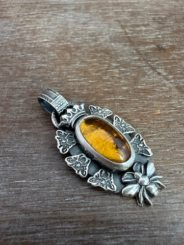 Fairy stone Pendant/Brooch with trilobites and garnets