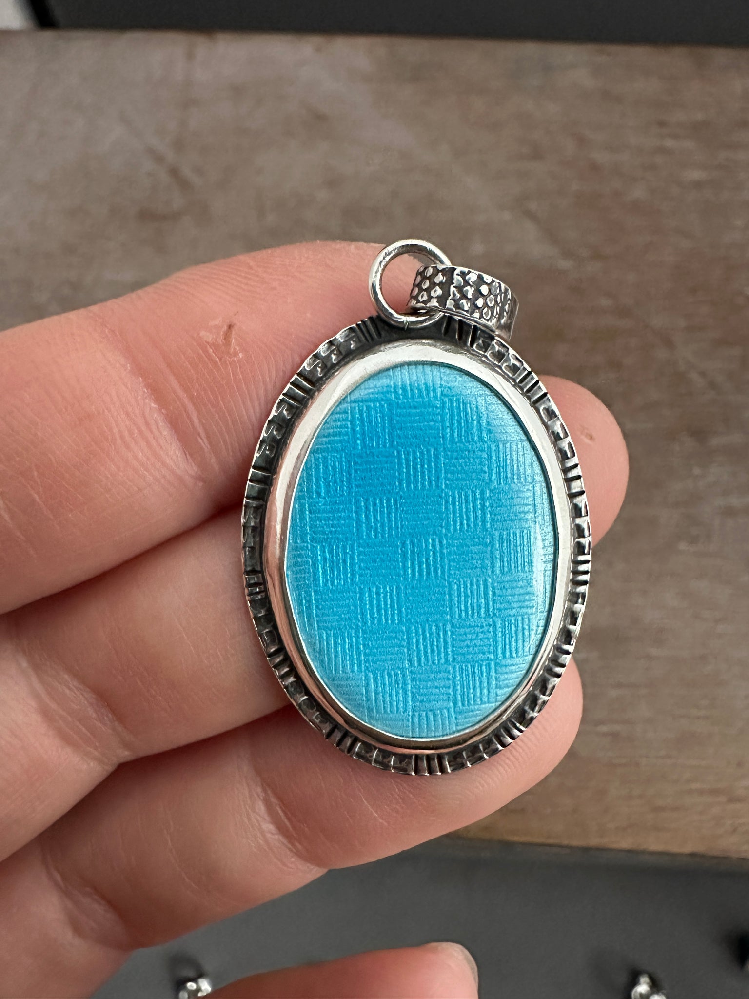 Textured Oval Enameled pendant