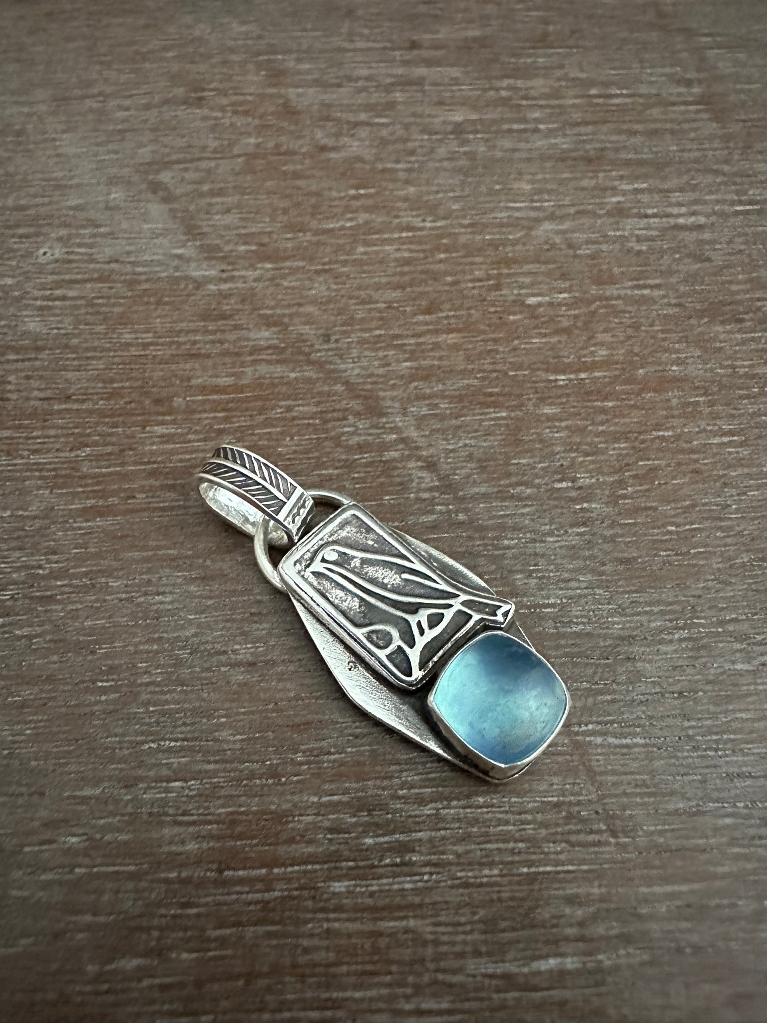 A Delicate bird sits a top a glowing aquamarine all set in sterling silver.